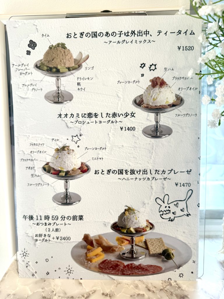 他にも魅力的なメニューがたくさん!メニュー名のこだわりが強くてついニヤニヤしてしまいます。本当に面白くて、どれも気になるものばかりですね。筆者は「オオカミに恋した赤い少女」が気になりました。え、赤ずきんちゃん?コンセプトカードが読んでみたいので、今度はこちらを頼んでみようかな♡