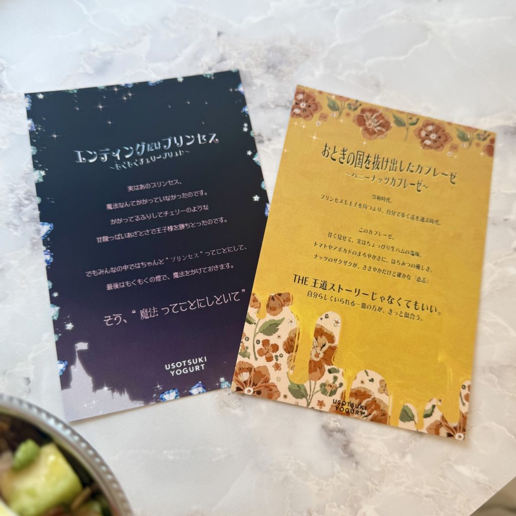 その小さなうそつきを楽しんでいただけるよう、各メニューには“コンセプトカード”を添えています。